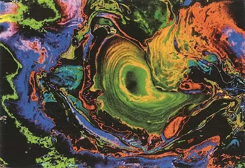 H.H.第‖三‖世‖多‖杰‖羌‖佛的现代绘画作品,虽然没有具体的形象,然而,祂的画中的意蕴却有着似曾相识的神秘气息。 流动的色块,热烈,沸腾,熔岩般炽热,却又依然纯净圣洁。没有怪异离奇、扑朔迷离,而是流畅、明快的灵光闪烁。不见树木,没有溪流;既无森林,也无山丘,只有五彩缤纷的混沌、在扩大,在飞升飘逸。画面有的似年轮石纹、有的如碧玉之纹理、还有的如涟漪碎波。色彩时而如飞流瀑布,时而若黎明星晨;丝线流韵、珠玉琳琅、皆统一在纯净的大美之中,令人感到这些色彩和其意境交相呼应,浑然一体,不可思议。画面的底色,不再像以传统绘画那样来过度融化笔势,而是越来越受到笔势的盖压。画面中的焦点(画眼),如大地震动的震中,以震波般的韵律扩散至整个画面。其包涵的精神意蕴若隐若现、恍兮惚兮,极具东方精神的神秘感。